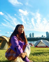 사진 속 보라는 맑은 하늘을 뒤로 하고 푸른 잔디에 앉아 청초한 매력을 뽐내 시선을 사로잡았다.