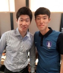 공개된 사진 속 김진야 선수는 훈남 포스를 자아내며 박지성과 함께 다정한 모습으로 카메라를응시하고 있다...