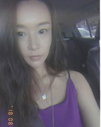 공개된 사진 속 배윤정은 보라색 빛 티셔츠를 입고 아름다운 미모를 뽐내고 있다...
