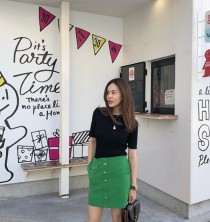 공개된 사진 속 아이비는 블랙 티셔츠에 초록색 미니스커트를 스타일링해 여신 미모를 뽐내고..