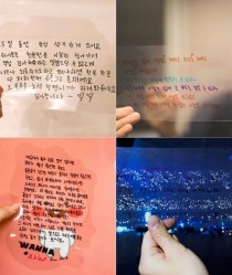 워너원이 1주년을 맞아 네이버 V앱에서 이벤트를 개최한 가운데 이들이 sns를 통해 손편지를 공개했다.