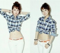 화보 속에는 체크무늬 셔츠를 묶어 날씬한 허리 라인을 노출하고 있는 박보영의 모습.