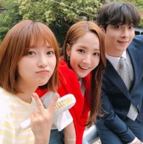 사진 속 세사람은 tvN 수목드라마 '김비서가 왜 그럴까' 촬영 중..