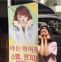tvN 새 드라마 '아는 와이프'에 출연하는 배우 한지민이 배우 김혜수가 보낸 간식차 인증샷을 공개했다.