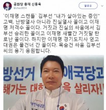 이재명 더불어민주당 경기도지사 후보와 배우 김부선의 스캔들에 공화당 신동욱 총재가 김부선을 응원했다.지난 10일 김부선은 KBS '9시 뉴스'에 출연, 이 후보와의 불륜 스캔들에 대해 "이게 거짓이라면 나는 천벌 받을 거고, 당장 구속돼도 어쩔 수 없다. 내가 살아있는..