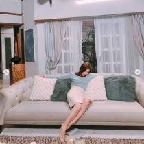 신다은은 지난 1월 자신의 인스타그램에 '요즘 나의 일상 배경은 다 세트장 이군 . 쇼파쿠션 과 보호색 기념인증 ????