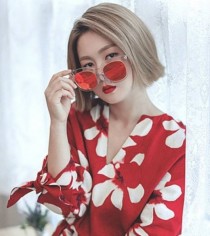 사진 속 박나래는 러블리한 레드컬러에 화이트 프린트가 된 브이넥 원피스를 입고 단발머리를 한 채 카메라를 바라보고 있다.