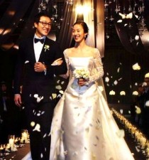 사진 속 이휘재는 턱시도를 차려입고 아내 문정원과 함께 함박웃음을 짓고 걸어나가고 있다.