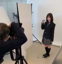 사진 속 하시모토 칸나는 교복을 입은채 광고 제품을 들고 미소짓고있다.