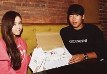 공개된 사진 속 강정호는 티아라 효민과 다정한 모습으로 카메라를 응시하고 있다.