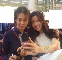 공개된 사진 속 김태리는 배우 김민희와 사랑스럽게 셀카 사진을 찍고 있는 모습이다