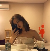 공개된 사진 속 엄지는 아름다운 미모를 뽐내며 셀카 사진을 찍은 모습이다.