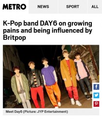 데이식스가 록의 본고장 영국 대표 일간지 메트로(Metro)에서 집중 조명을 받으며 "성장통을 노래하는 K팝 밴드"로 소개돼 글로벌 음악팬들의 이목을 끌었다.