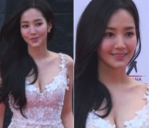공개된 사진 속 박민영은 드레스를 입고 완벽한 가슴라인을 뽐내고 있다.
