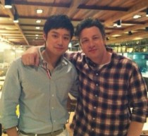공개된 사진 속 제이미올리버는 훈훈한 미소로 천정명에게 어깨동무를 하고 있다.
