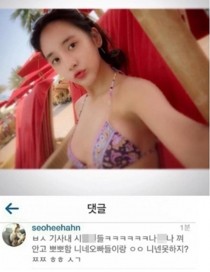 한서희는 댓글로 "기사내 시XXX들. 나 X나 껴안고 뽀뽀함. 니네 오빠들이랑. 니넨 못하지?..