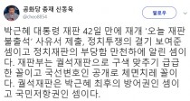 박근혜 전 대통령이 42일만에 재개되는 자신의 재판에 출석하지 않겠다는 입장을 밝혔다.법원과 교정 당국에 따르면 오늘 오전 7시 30분 쯤 박 전 대통령은 현재 수감 중인 서울구치소에 건강상의 이유를 들어 불출석 사유서를 제출했다.이에 대해 오늘 오전 공화당의 신동욱..