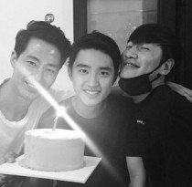 공개된 사진 속 도경수는 절친 조인성과 이광수와 함께 행복한 모습으로 카메라를 응시하고 있다.