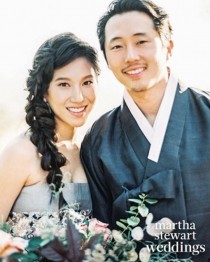 공개된 사진에서 스티븐 연은 한복을, 조아나 박은 한복을 변형한 드레스를 입고 있다. 나란히 서..