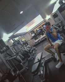 사진 속에는 운동기구 위에 앉아있는 정용화가 근육질 몸매를 자랑하며 핸드폰을 응시하고 있는 모습이다...
