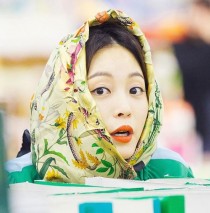 게재된 사진 속 그는 얼굴 전체에 꽃스카프를 두르고 이목구비를 살짝 보인 채..