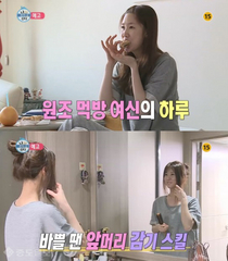 이수경은 먹으면서 승마 운동을 하는 것은 기본, 무릎 나온 츄리닝에 복대를 입고 동네를 누비는 모습까..