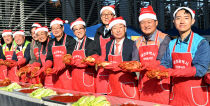 12일 대전 서구 엑스포시민광장에서 열린 따뜻한 겨울나기 김장 대봉사에서 선양소주, 롯데백화점을 비롯한 38개 기업 및 자원봉사자들이 김장을 만들고 있다. 이성희 기자 token77@