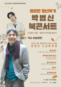 (재)논산문화관광재단(이사장 백성현)은 강경산 소금문학관 행사 운영 사업의 일환으로 영원한 청년작가 박범신 북콘서트 ‘그리움의 선율 -갈망의 3부작을 말하다’를 15일 오후 1시부터 3시까지 강경산 소금문학관에서 개최한다. 이번 북콘서트는 박범신 작가의 ‘갈망의 3부작..