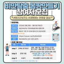 예산군보건소는 지역 주민의 비만 예방과 건강한 생활습관 형성을 위해 '비만탈출 몸짱만들기' 참여자를 모집한다고 24일 밝혔다. 참여 대상은 예산군에 거주하는 19세부터 59세까지 체질량지수(BMI) 25 이상 성인 40명을 대상으로 한다. 모집 기간은 2월 25일부터..