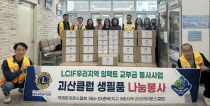 괴산라이온스클럽(회장 홍순만)이 5일 괴산읍 행정복지센터를 방문해 관내 생활 형편이 어려운 이웃들을 위한 참치, 국수 등의 식료품을 후원했다. 홍 회장은 "주변의 어려운 이웃을 돌아보고 함께하는 나눔 활동이 무엇보다 중요하다"며 "앞으로도 회원들과 함께 지속적인 나눔과..