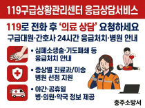 충주소방서가 위급 상황에서 시민들이 즉시 의료 상담과 응급처치 지도를 받을 수 있도록 '119구급상황관리센터' 응급상담 서비스 알리기에 나섰다. 소방서는 13일 '119구급상황관리센터'를 통해 응급처치 지도와 질병 상담, 병원·약국 안내 등 응급상담 서비스를 제공하고..