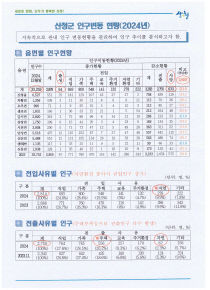 경남 산청군의 2024년 인구변동 현황이 공개됐다. 출생은 64명이고 사망은 633명이다. 자연감소가 569명에 달한다. 전입은 2814명이고 전출은 2750명으로 사회증가는 64명에 불과하다. 결과적으로 산청군 인구는 505명 순감소했다. 총인구는 3만3259명이다...