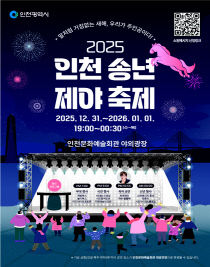 인천시는 오는 12월 31일, 인천문화예술회관 야외광장에서 한 해의 마무리와 새해의 시작을 시민과 함께 기념하기 위해 '2025 인천 송년제야 축제'를 개최한다고 밝혔다. 이번 송년제야 축제는 시민들이 직접 참여하고 체감할 수 있는 연말연시 대표 축제로, 오후 9시부터..