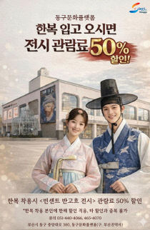 부산 동구가 한복 입기 문화를 확산하고자 한복을 입고 동구 문화플랫폼을 찾은 관람객에게 전시료를 50% 할인해 준다. 이번 이벤트는 '불멸의 화가, 반 고흐 레플리카 展' 전시 기간 내내 적용돼 정가보다 저렴한 요금으로 작품을 즐길 수 있다. 할인 적용 시 입장료는 성..
