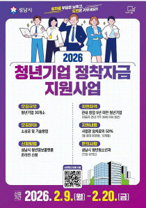 성남시(시장 신상진)는 청년 창업기업의 안정적인 정착을 돕기 위해 사업장 임차료의 50%를 지원한다고 9일 밝혔다. 시는 20일까지 신청을 받아 연말까지 월 최대 50만 원(연간 500만 원)을 30개 기업에 지원한다. 신청 대상은 19~39세의 성남시민이면서 공고일(..