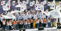 16일 대전 동구 인동 만세로 광장에서 열린 제23회 인동장터 독립만세운동 기념행사에서 내빈과 참가자, 어린이들이 만세운동 퍼포먼스를 하고 있다. 이성희 기자 token77@