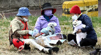 전형적인 봄 날씨를 보인 16일 대전천에서 시민들이 따뜻한 햇볕을 쬐며 반려견과 함께 산책을 즐기고 있다. 이성희 기자 token77@