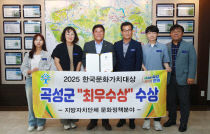 2025-09-23 곡성군, 한국문화가치대상 '최우수상' 2년 연속 수상 전남 곡성군이 최근 '2025 한국가치문화대상'에서 2년 연속 최우수상을 받으며 지역 문화정책의 우수성을 다시 한번 인정받았다. 23일 곡성군에 따르면 문화체육관광부가 후원하고 (사)한국문화가치연구협회가 주관하는 한국문화가치대상은 지역의 특색 있는 문화사업을 발굴·실행..