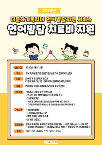 영동군가족센터는 다문화가족 자녀의 언어 능력 향상을 위해 '언어발달 치료비 지원 사업'을 추진한다고 15일 밝혔다. 신청 및 지원 기간은 4월부터 12월까지이며, 치료는 보호자와 협의해 선정한 외부 언어발달치료 전문기관에서 진행된다. 지원 대상은 만 12세 이하(초등학..