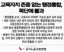 충남·대전과 전남·광주, 대구·경북 행정통합을 위한 특별법안을 놓고 교육계가 교육의 전문성과 독립을 위한 조항 개정을 요구하고 나섰다. 전국공무원노동조합 소방본부는 ‘시·도 소방본부’ 명칭을 ‘특별시소방청’으로 변경해야 한다고 목소리를 높였다. 교사노동조합연맹과 대전과..