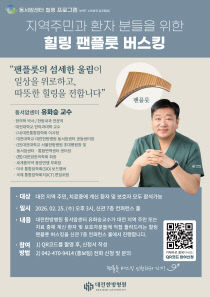 대전대 대전한방병원(병원장 김영일)은 2월 25일 오후 3시, 병원 7층 컨퍼런스 홀에서 동서암센터 유화승 교수의 팬플룻 연주 버스킹 공연을 개최한다. 이번 공연은 지역주민과 병원에 내원하여 치료 중인 환자와 보호자들을 위해 음악을 통한 정서적 위로와 휴식의 시간을 제..