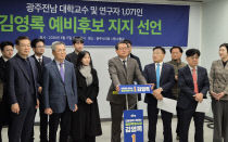 전남·광주 교수·연구자 1071인이 17일 광주시의회 1층 시민소통실에서 김영록 전남광주특별시장 예비후보 지지선언을 진행했다. 이들은 "대통령이 원하는 통합특별시장, 혁신 행정가 김영록만이 전남광주특별시를 이끌 수 있다. 지금 전남과 광주는 중대한 전환의 길목에 서 있..