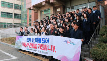 인천시 미추홀구(구청장 이영훈) 간부 공무원 70여 명이 17일 본관 중앙계단 앞에서 '미추홀구 신청사 건립의 신속한 추진'을 촉구하는 성명서를 발표했다. 성명서 발표 현장에서는 구호 제창과 기념 촬영이 진행되며, 신청사 건립이 조속히 추진되기를 바라는 간부 공무원들의..