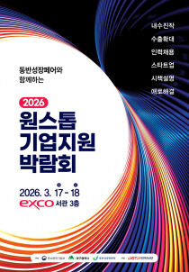 대구광역시는 지역기업의 지속 가능한 성장을 지원하기 위해 오는 3월 17일부터 18일까지 EXCO 서관 3층에서 열리는 '동반성장페어와 함께하는 2026 원스톱 기업지원박람회' 참가기업을 모집한다. 이번 박람회는 대구광역시·중소벤처기업부·동반성장위원회가 공동 주최하고..