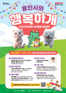 용인특례시(시장 이상일)는 지역 반려인 문화축제를 19일 용인시 실내 체육관 앞 에서 개최한다고 13일 밝혔다. 이번 행사는 반려동물과 시민이 함께 공존할 수 있는 문화 확산과 유기동물 발생을 줄이기 위한 인식 개선을 위해 마련됐다. 행사는 오전 10시부터 오후 5시까..