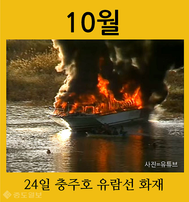 24일 충북 단양군에서 충주호 유람선에서 불이 나 승객 132명 가운데 29명이 사망하고 1명이 실종됐다.