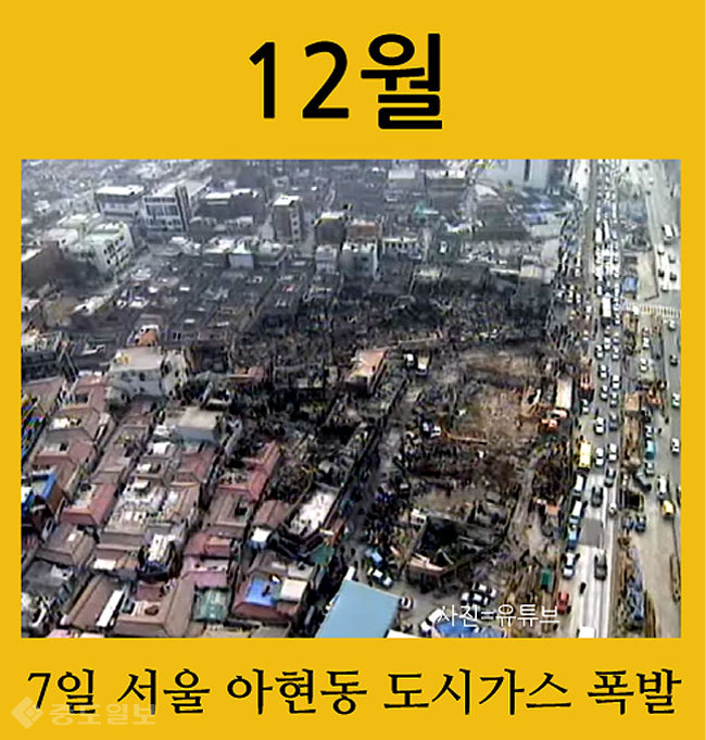 7일 서울 아현동 도시가스 폭발 사고가 발생해 12명이 사망하고 101명이 부상당했다.