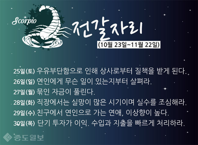 28일(화)큰돈 나갈 일이 생기니 주변을 잘 살펴라.