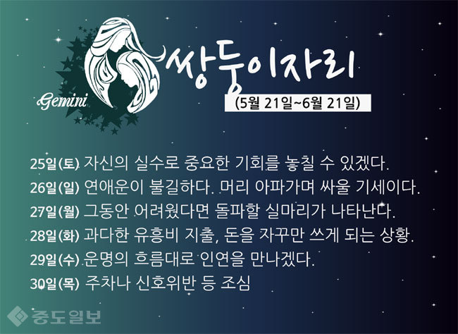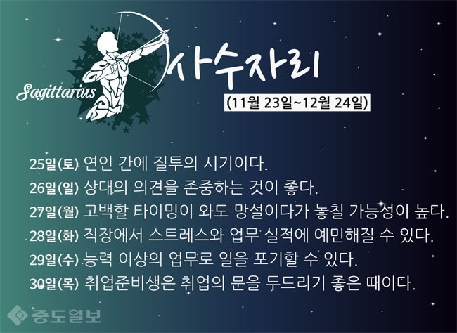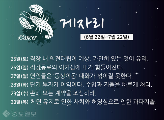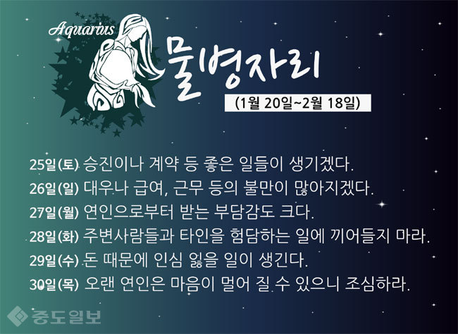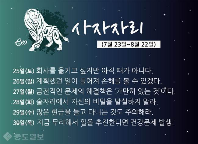 26일(일) 연인에게 돈이 많이 들어가는 것을 조심하라.