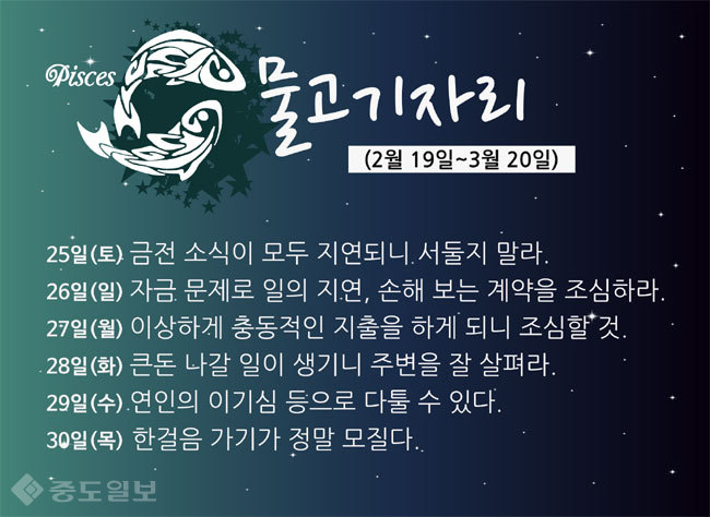 25일(토)금전 소식이 모두 지연되니 서둘지 말라.